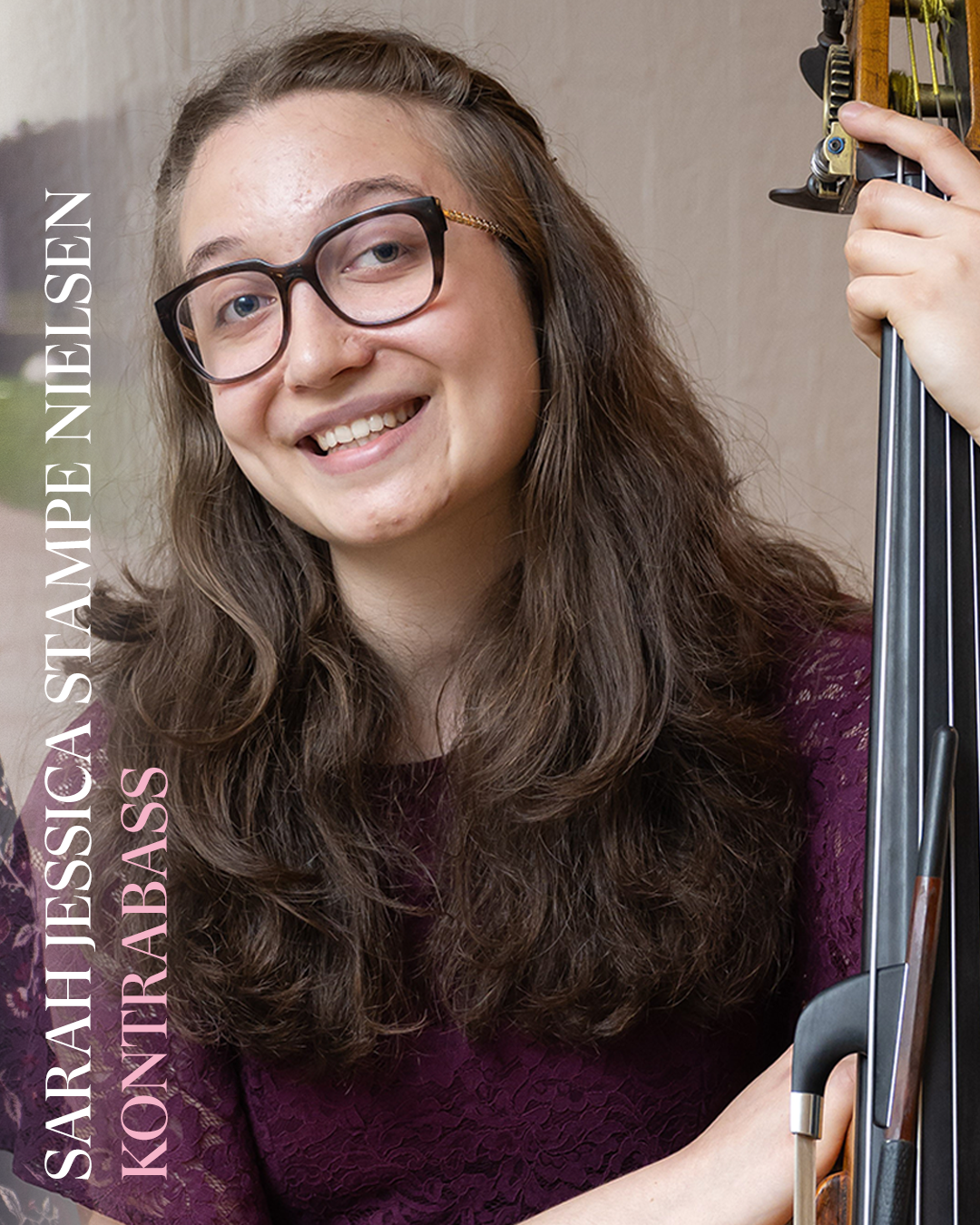 Sarah Jessica Stampe Nielsen er 22 år og kommer fra Stavanger. Hun begynte å spille kontrabass da hun var 13 år, hos Bjørn Nilssen på Stavanger Kulturskole. I 2021 startet hun sin bachelorgrad ved Hochschule für Musik Nürnberg hos Prof. Dorin Marc og Prof. Michail-Pavlos Semsis, og i 2024 byttet hun til Hochschule für Musik Hanns Eisler Berlin hos Dr. Janusz Widzyk og Prof. Esko Laine.
